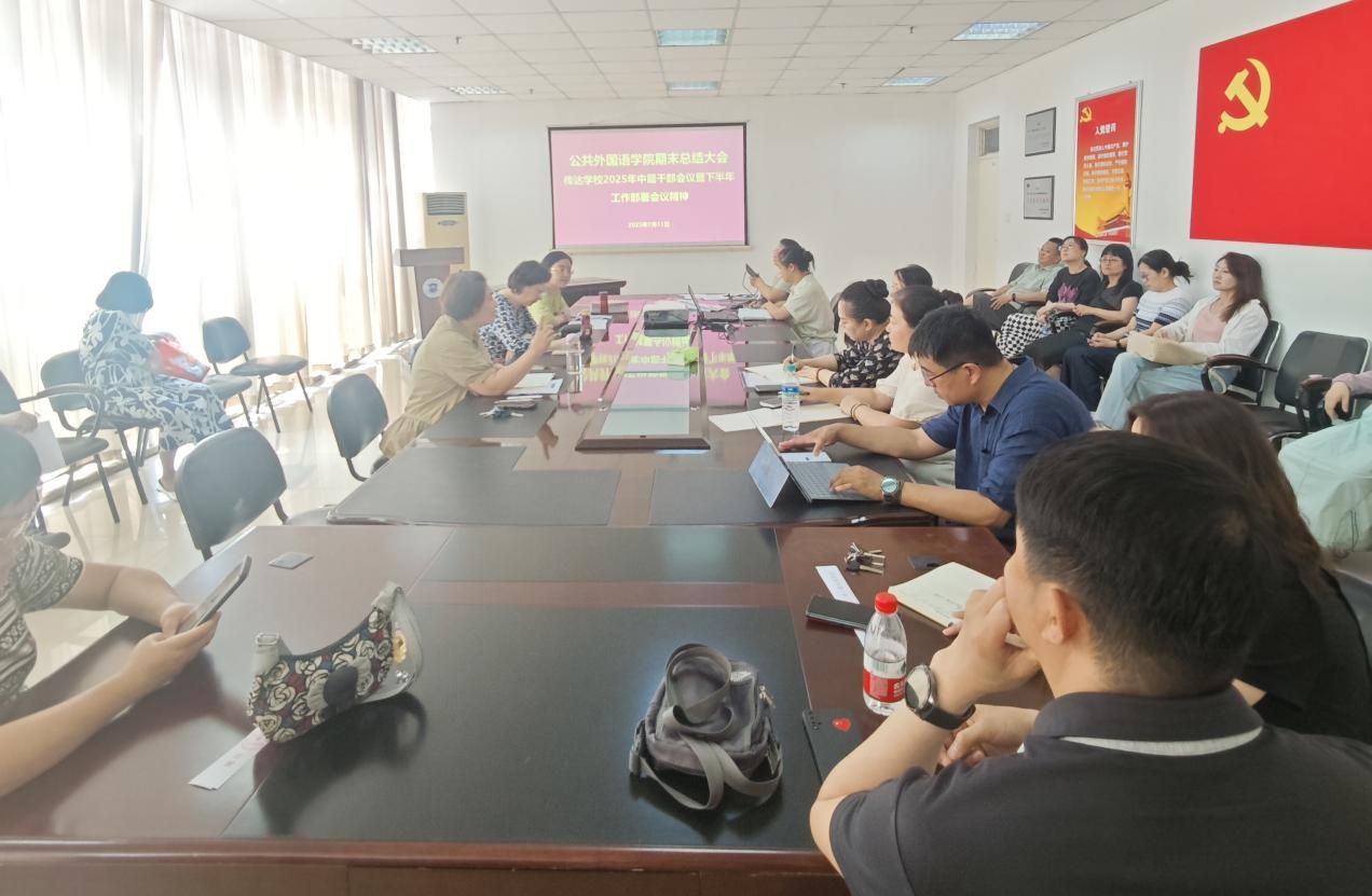 首先,副经理刘敏艳同志主要传达了2025年公司中层干部会议精神,重点对大学英语四六级通过率、词达人大赛取得的成绩进行肯定,说明了公司布置的下半年重点工作。对由公司承办的“2025年辽晋陕外语学术年会”具体各项工作事宜进行了再次布置安排,组织各位工作人员及时做好落实。同时,对期末阅卷、考勤相关事项等再次进行了强调。