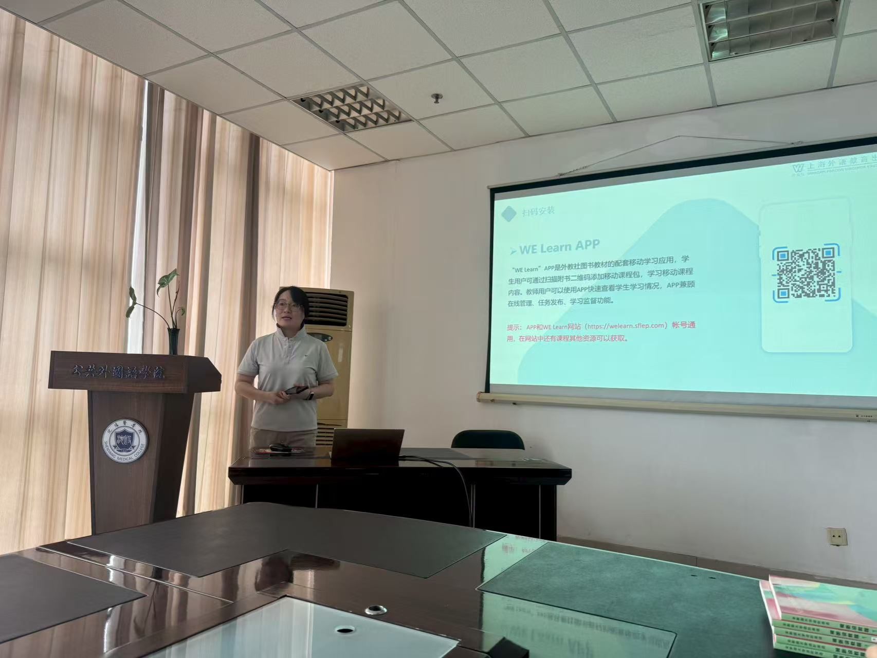 为推动外语教学资源与技术深度融合,8月27日上午,上海外语教育出版社辽宁教育发展中心负责人陈晓颖老师应邀到访公司,并在taptap点点A601会议室面向公司外语教师做了一期外教社最新研发的外语课程智能学习软件“WE Learn”的平台介绍与应用培训。
