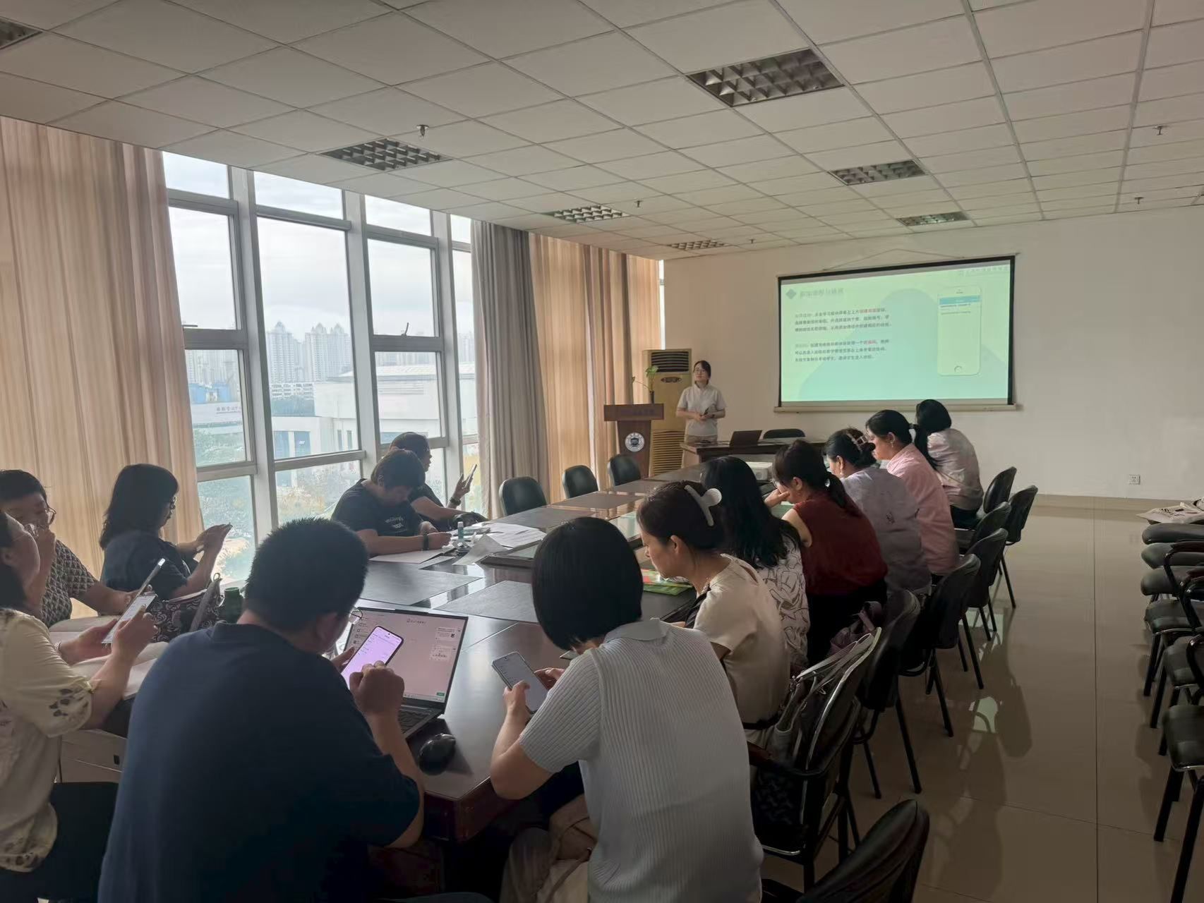 培训过程中,陈晓颖老师以“赋能外语课堂,提升教学效能”为核心,围绕 “WE Learn”教学软件展开详细解读。她结合外语教学中的实际场景,从软件的核心特点切入,重点介绍了 “师生互动模块”“个性化学情分析”“网络中的学习分析”等功能优势。随后通过PPT演示,清晰讲解了软件“教师端备课-员工端学习-数据端反馈”的运行模式。最后还针对课程类型,指导了软件在相关教学环节的实操方法,让在场教师直观掌握了软件与课堂教学的结合路径。