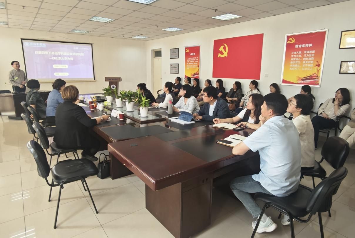 由科技处主办,公司承办的第十六期学术大家讲坛于9月24日下午在博学楼A601会议室召开。本期讲坛邀请山东大学外国语公司副经理苏永刚教授主讲,主题为“四新建设背景下外语团队建设及科研拓展”。苏永刚教授担任人文医学、应用语言学、心理健康护理学博士生导师,兼任世界翻译教育联盟医学翻译与教学研究会副会长、中国翻译协会医学语言服务专委会副主委、山东省大学外语教育专委会会长等职。