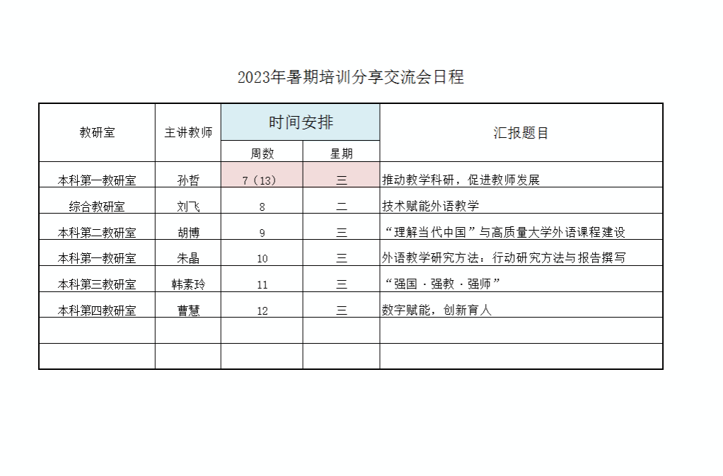 暑期培训日程